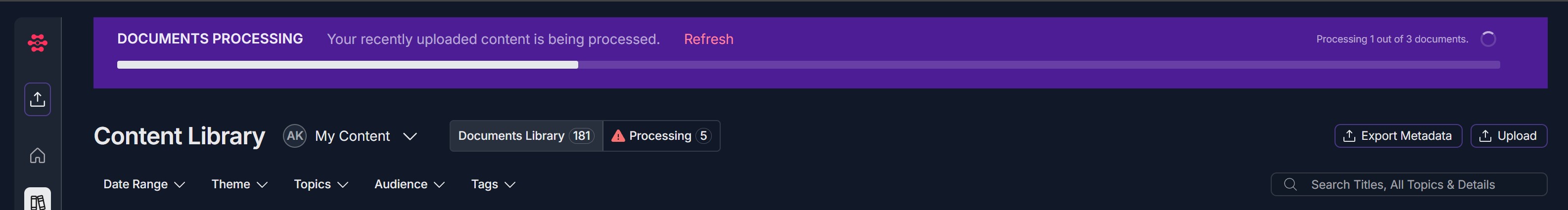 By supporting bulk uploads of up to 100 documents in widely used formats such as PDF, DOC, DOCX, TXT, and SRT, this feature streamlines the process of converting articles, transcripts, and reports into structured, taggable content. For optimal accuracy, each file is processed as a single article, ensuring clean segmentation and reliable analysis.