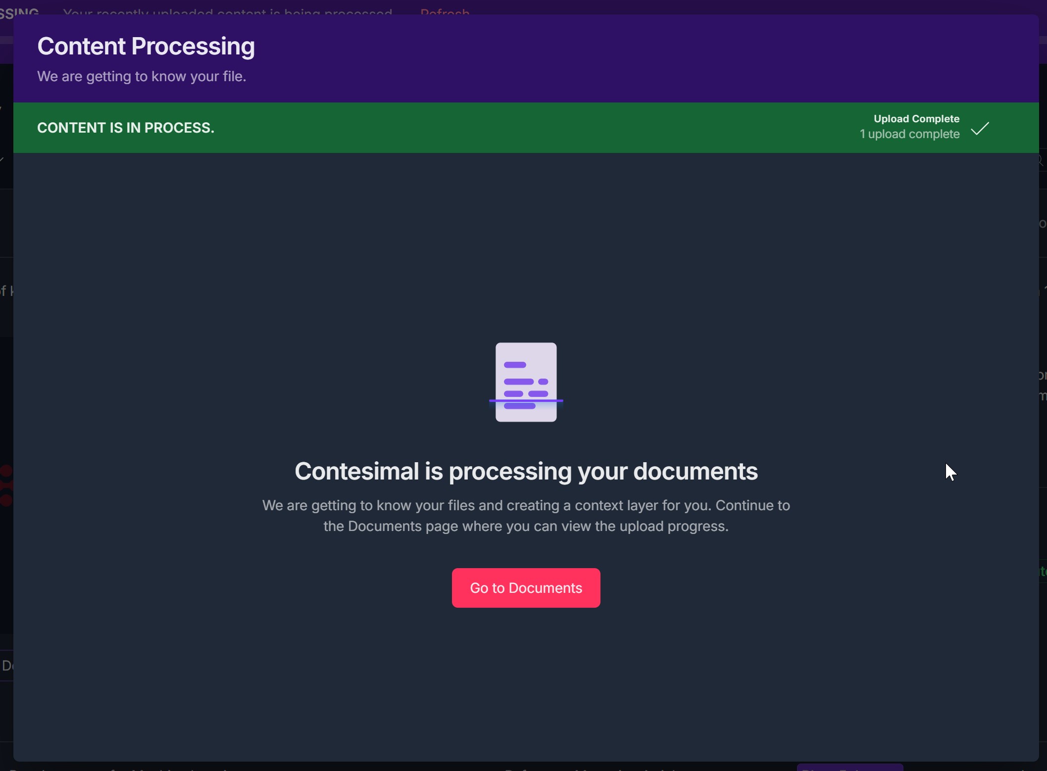 7. After import, you are directed to a screen stating: “Contesimal is processing your documents.”