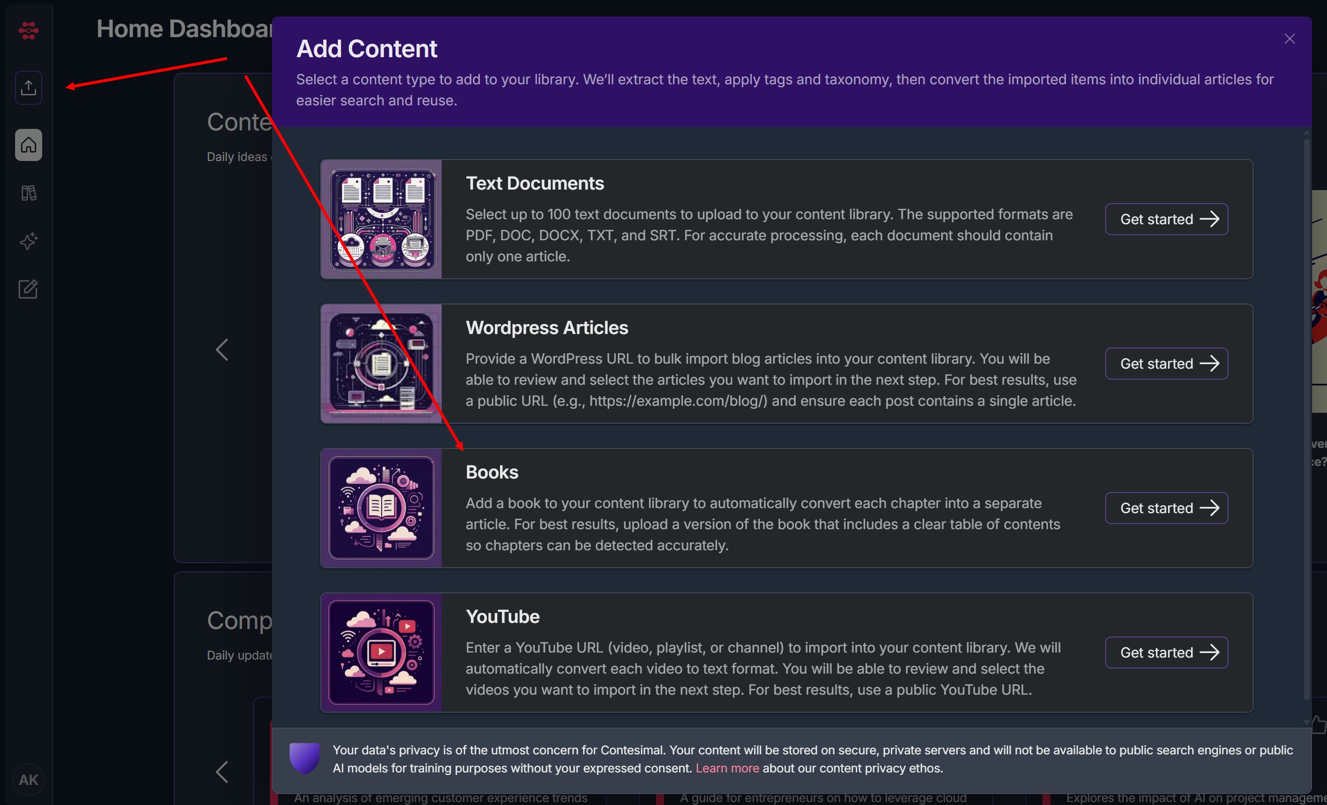 - Selected content will be transferred into your Contesimal Library for processing.