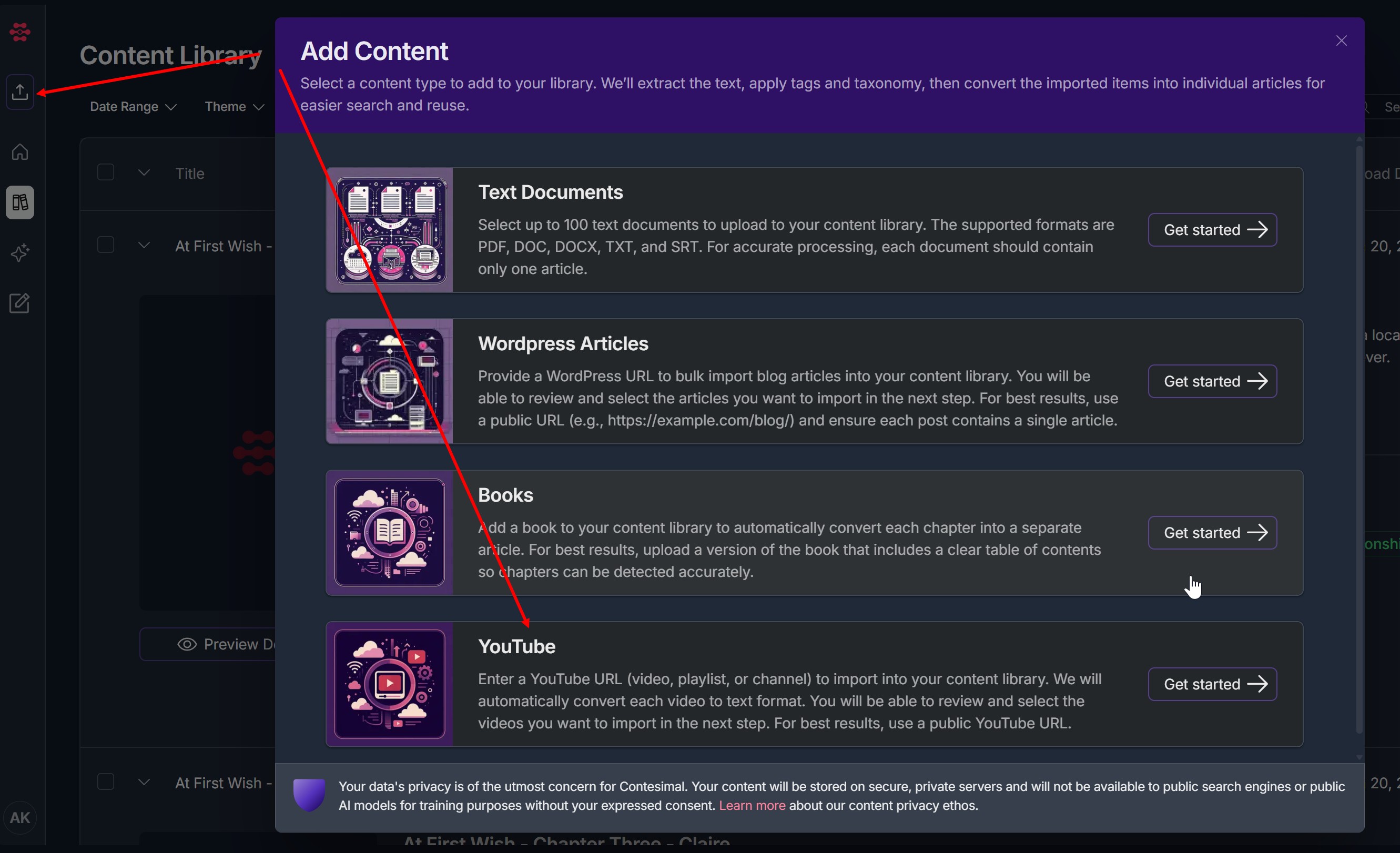 - Selected content will be transferred into your Contesimal Library for processing.