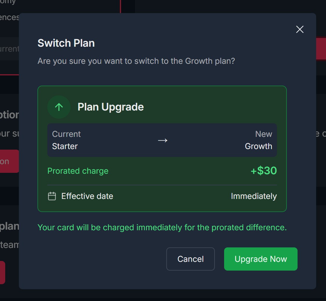 - Review available plans and upgrade/downgrade by switching plans