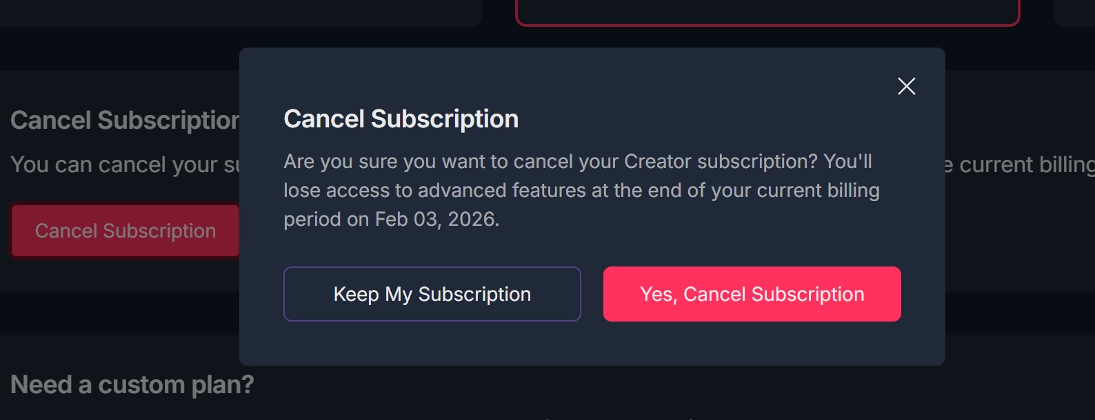 - Click "Yes, Cancel Subscription"