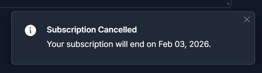 - Cancel your subscription (your plan remains active until the end of the current billing cycle)