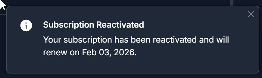 - Verify the message indicates your plan will be raactivated and will renew at the end of the current billing cycle