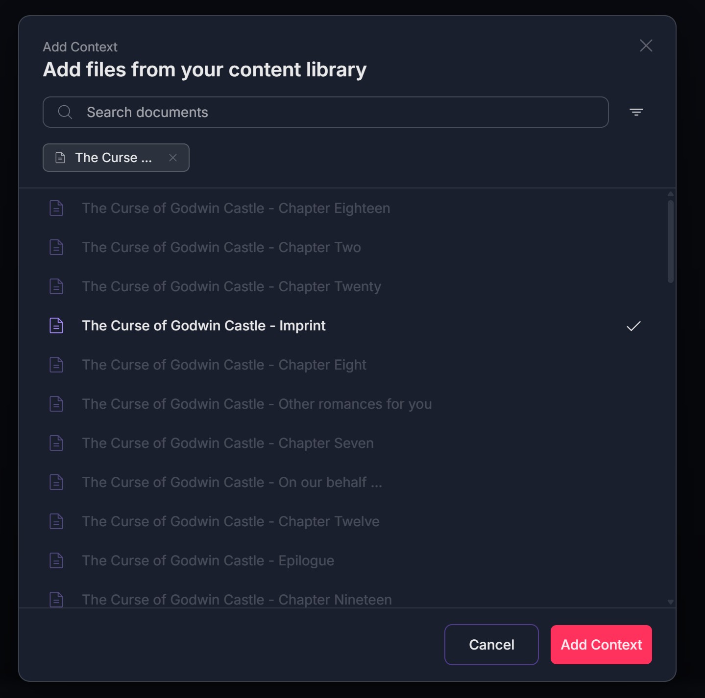 - "Add from your Library" - Select documents from your existing content library