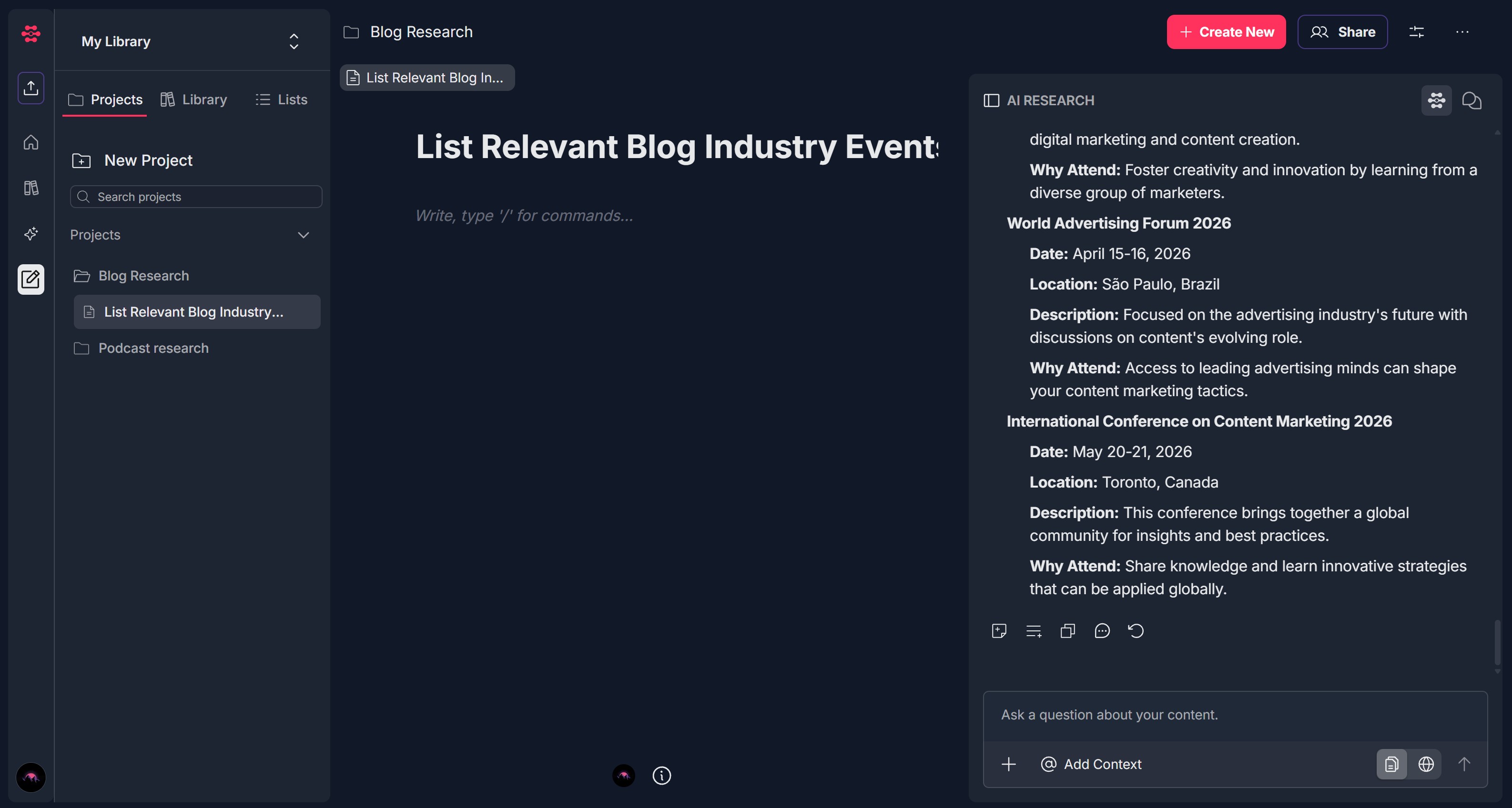 Try refining the research - use the AI Research panel to ask follow-up questions
