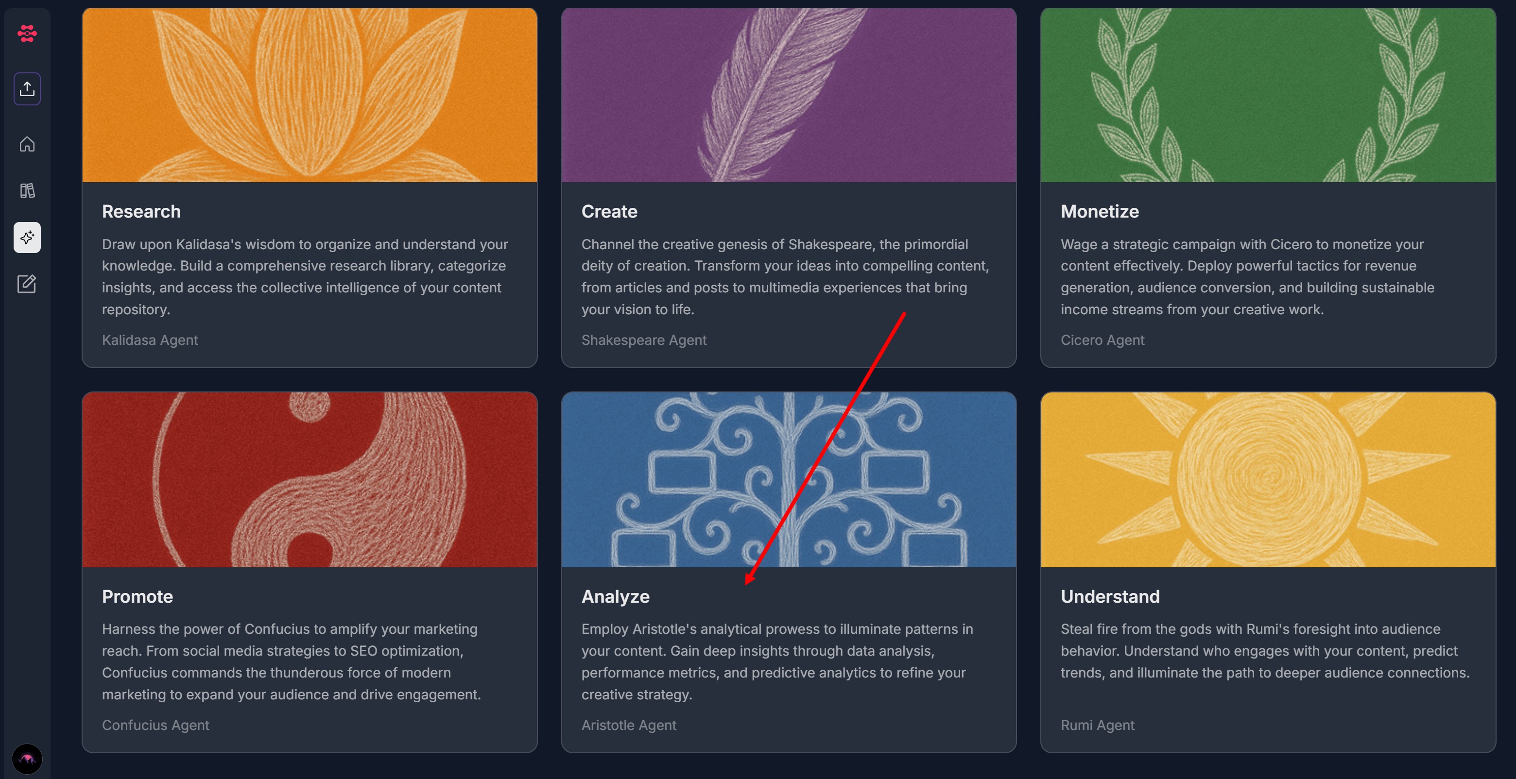 The Agent Library - Analyze feature lets you use Aristotle (Contesimal's AI agent) to analyze your content library and generate insights across different analytical dimensions. You can choose from six analysis types: Commercial & Conversion Analysis, Structural & Format Analysis, Authority & Expertise Analysis, Audience & Pain-Point Analysis, Thematic & Conceptual Analysis, and Analyze My Content.