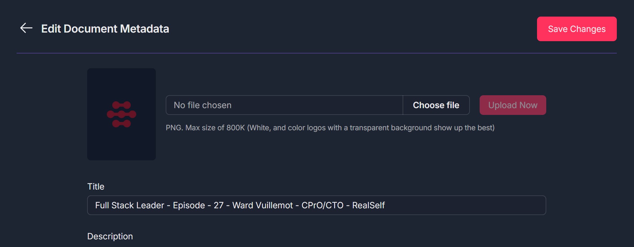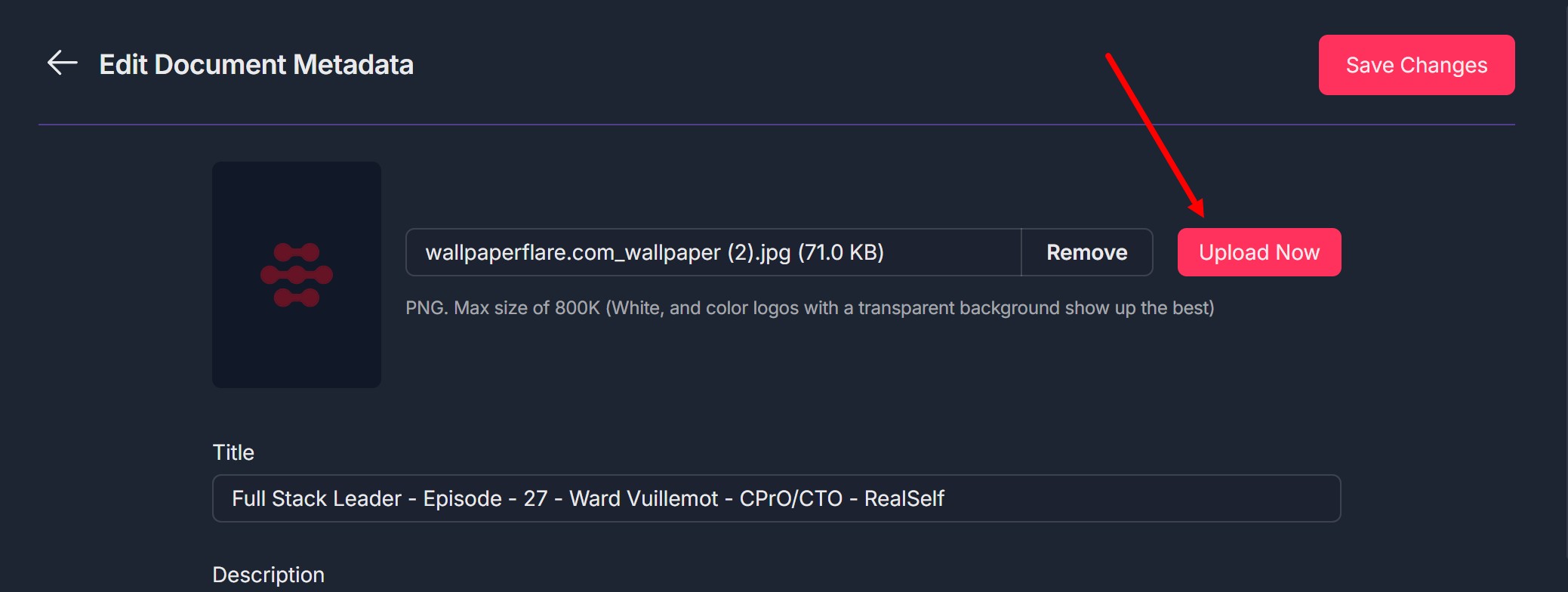 - Click the red Save Changes button at the top right of the Edit Document Metadata pop-up