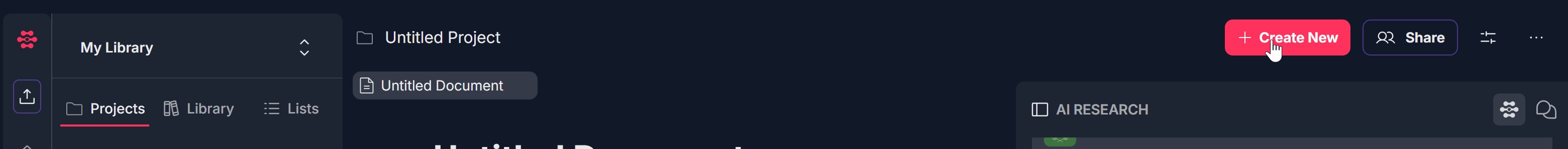 - Refresh the page and open the project again, then click + Create New